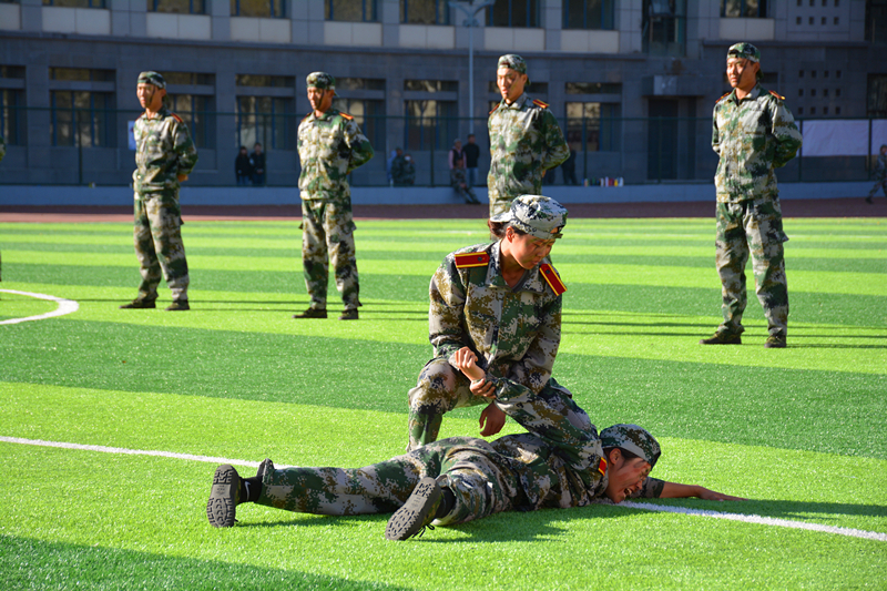 大會首先舉行升國旗儀式,會場全體肅立,同唱國歌。分列式在激昂雄壯的《中國人民解放軍進行曲》中拉開帷幕,全體參訓學生在國旗護衛隊的引領下,踏著整齊的步伐,喊著響亮的口號,以飽滿昂揚的精神狀態、堅毅的意志品質列隊走過主席臺前,充分展現出我校青年學子朝氣蓬勃、奮發向上的精神風貌。接著,2020級新生進行了軍體拳、女子匕首格斗術、應用戰術、格斗對抗、舞蹈、“校徽”、“校訓”、“民族團結”、“雄鷹展翅”字幕表演等匯報演出,以較好的技能展現出新時代民院學子昂揚向上的精神風貌與砥礪奮進的意志品格。