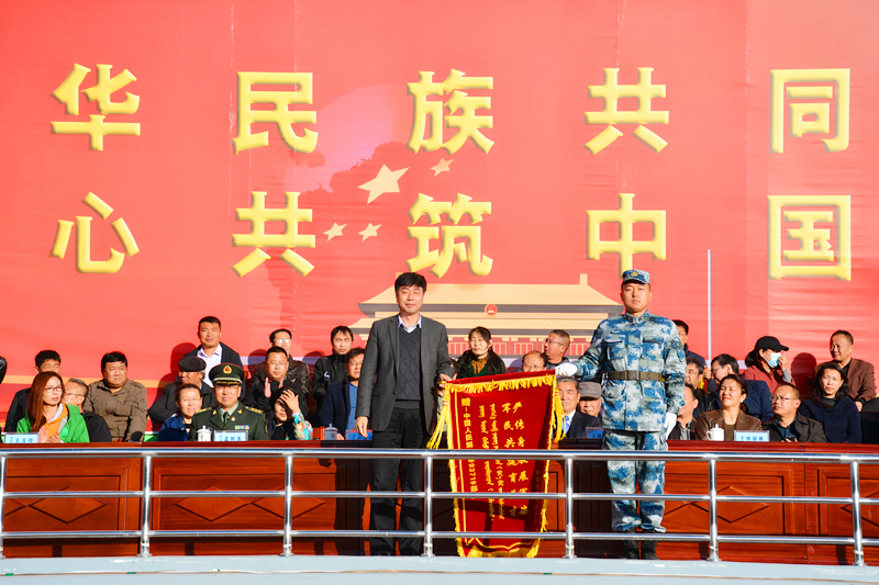 學校黨委書記孫國權同志向承訓部隊贈送了錦旗。