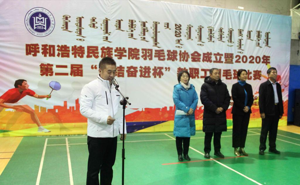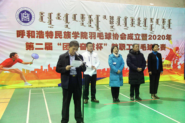 開幕式在莊嚴的國歌聲中開始。開幕式上,校工會主席邢文岐宣讀了學校工會《關于同意成立呼和浩特民族學院羽毛球協會請示的批復》,學校黨委副書記、校長格日樂圖和副校長納麗娜為羽毛球協會授牌。
