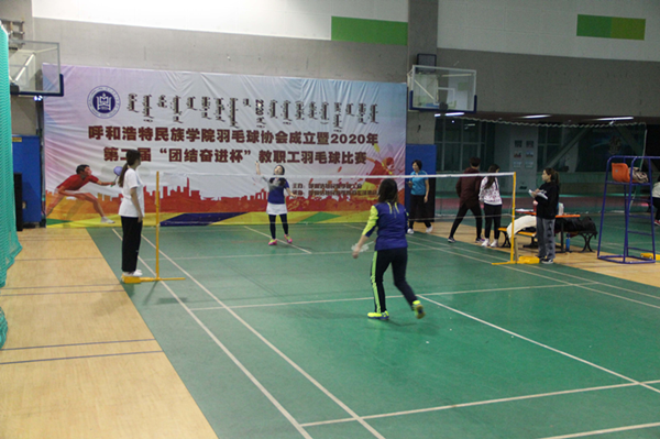 為鑄牢中華民族共同體意識,進一步豐富教職工的文化生活,切實提高教職工的身體素質,推動“中華民族一家親,同心共筑中國夢”的理念,由學校工會主辦,羽毛球協會承辦的呼和浩特民族學院羽毛球協會成立暨2020年第二屆“團結奮進杯”教職工羽毛球比賽開幕式11月25日下午在北校區體育館一樓舉行。學校黨委副書記、校長格日樂圖,黨委副書記胡春梅,副校長納麗娜出席開幕式。學校各職能部門和分工會主席、全體運動員、裁判員和部分學生代表150余人參加了開幕式。開幕式由學校黨委委員、黨政辦主任朝格吉樂圖主持。