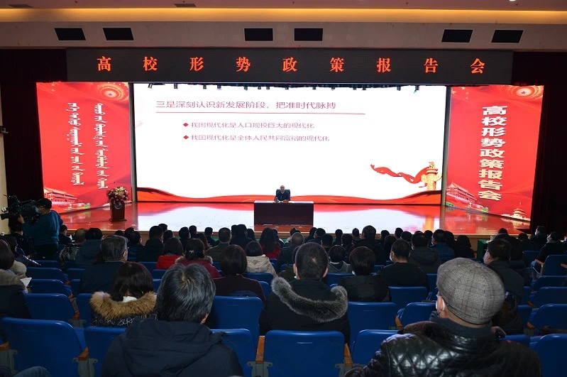 報告會在學校圖書館二樓報告廳舉行。報告廳里,一張張朝氣蓬勃的面孔,洋溢著青春的氣息。楊偉東部長圍繞從黨的十九屆五中全會精神中把握國之大者、從黨中央賦予內蒙古的戰略定位中準確認知區情、從建設亮麗內蒙古的新征程中找準人生航向三個方面,深入解讀了黨的十九屆五中全會提出的新思想新觀點新論斷,詳細介紹了習近平總書記為內蒙古量身定制的行動綱領,為同學們作了一場生動而深刻的形勢政策報告。