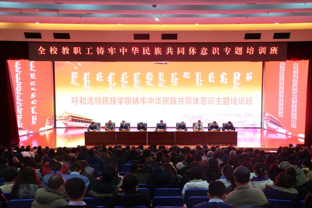 為認真落實自治區教育廳黨組《關于印發<全區教育系統開展鑄牢中華民族共同體意識培訓教育方案>的通知》的部署要求,12月26日上午,我校鑄牢中華民族共同體意識專題培訓班開班儀式在圖書館二樓報告廳舉行。全校600余名教職員工參加了開班儀式。校黨委書記副書記、校長格日樂圖主持開班儀式。