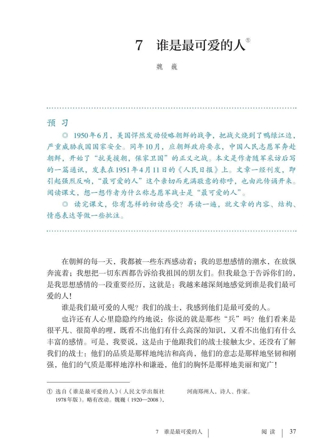 誰是我們最可愛的人呢?我們的戰士,我感到他們是最可愛的人。