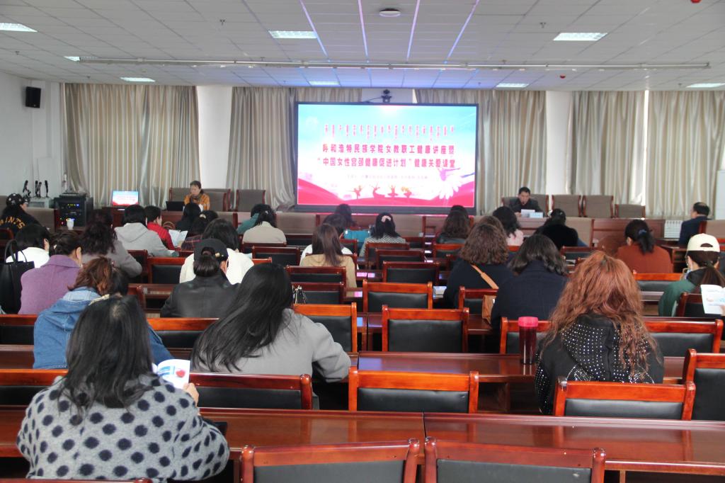 3月8日下午,在慶祝“三八”國際婦女節之際,為進一步倡導健康生活方式,普及健康知識,增強女教職工的健康意識,關愛我校女教職工身心健康,我校工會聯合中專路街道工會委員會,舉辦了呼和浩特民族學院女教職工健康講座暨“中國女性宮頸健康促進計劃”女性健康關愛課堂。特邀請了內蒙古自治區人民醫院婦產科主任醫師吉亞楠教授為我們做了如何預防宮頸癌科普知識專題講座。講座由工會主席邢文岐主持,學校女教職工代表和學校工會全體工作人員80多人參加了講座。