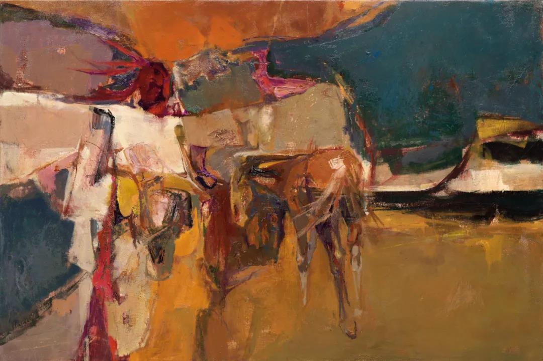 參展作品《湖畔人家》油畫獲優秀獎作品、