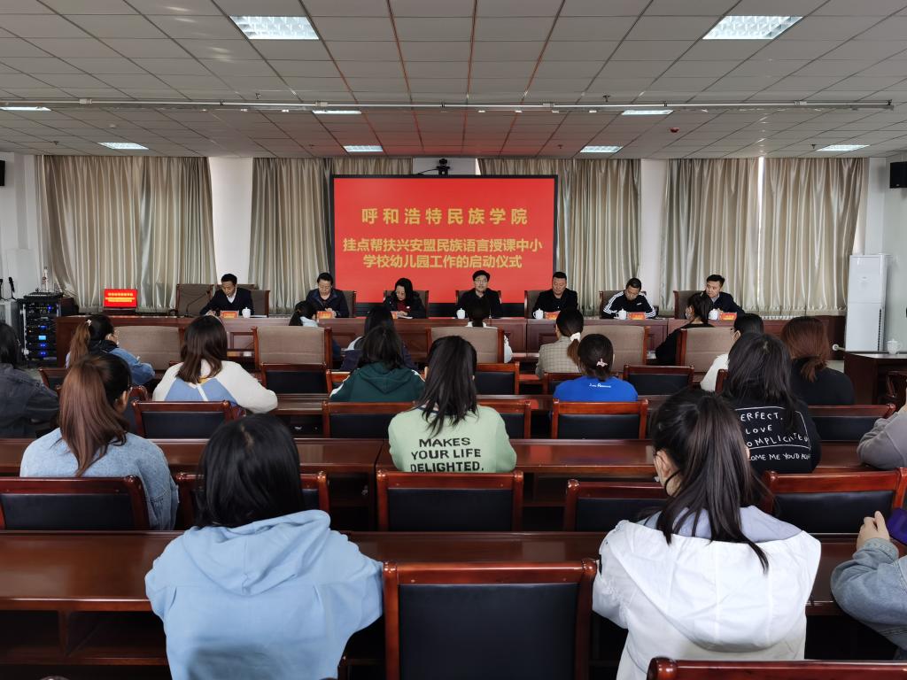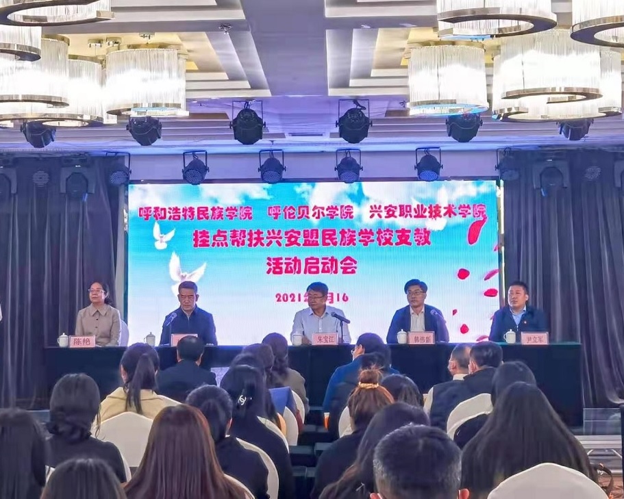 3月16日,呼和浩特民族學院、呼倫貝爾學院、興安職業技術學院等三所高校掛點幫扶興安盟民族語言授課學校支教活動啟動會在烏蘭浩特召開,我校黨委委員、副校長韓偉新出席并講話,文學院崔鳳珍院長、教務處佟繁榮副處長、興安盟教育行政部門相關領導以及三所高校支教師生100余人參加會議。