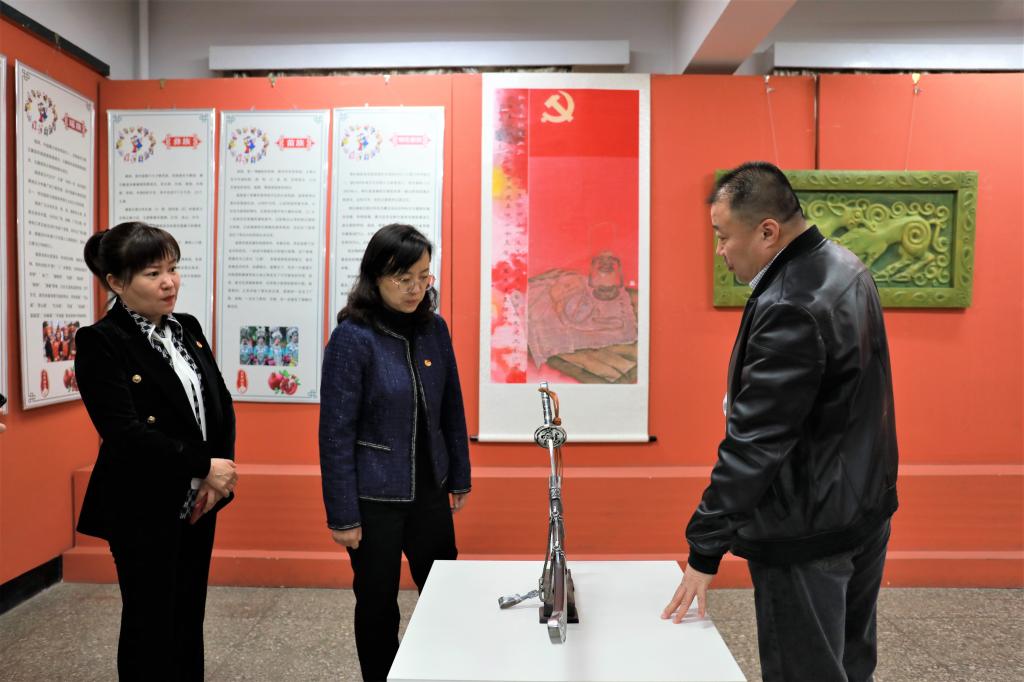 隨后,在校團委書記蘇倫高娃,副書記白銀亮的陪同下,匡曉蕾副書記一行前往美術學院參觀了“爭做民族團結石榴籽”主題作品展。