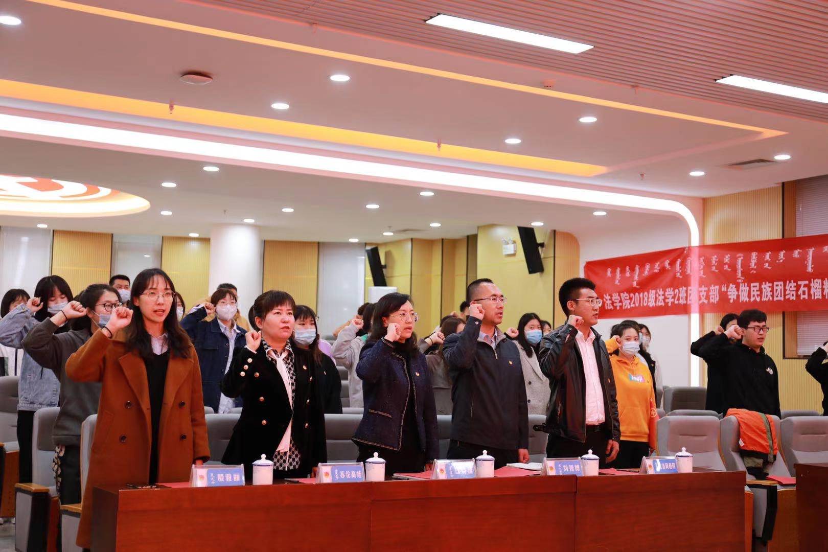 參加了法學院2018級法學2班團支部“爭做民族團結石榴籽”主題團日活動,與團員青年們齊唱團歌,重溫入團誓詞,共同學習了《習近平與大學生朋友們》。董越同學作了《鑄牢中華民族共同體意識》主題演講,張朔滔、張小琳等同學分享了身邊的民族團結小故事。