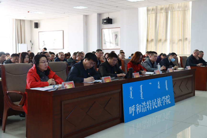 學校黨委副書記、校長格日樂圖代表學校黨委、行政全面回顧了2020年學校各項工作,并從加強黨的全面領(lǐng)導、加強黨的政治建設(shè)、強化理論武裝、切實鑄牢中華民族共同體意識、認真開展黨史學習教育、提升思想政治工作質(zhì)量、加強學校文化建設(shè)、確保意識形態(tài)安全、大抓基層黨建、提升干部隊伍能力素質(zhì)、不斷加強黨風廉政建設(shè)、加強和改進統(tǒng)戰(zhàn)工作、加強群團與離退休工作等方面部署了2021年黨建工作,從編制“十四五”規(guī)劃、提升學科建設(shè)水平、提高教育教學質(zhì)量、推進校內(nèi)雙語教學改革、增強科研創(chuàng)新能力、優(yōu)化師資隊伍結(jié)構(gòu)、提升教師隊伍整體素質(zhì)、加強學生管理工作、擴大畢業(yè)生就業(yè)、深化交流合作、提升綜合服務(wù)保障水平等方面部署了2021年中心工作。格校長還就如何認識和推進申碩工作,如何加強一流專業(yè)建設(shè)、“四新”專業(yè)建設(shè),如何推進轉(zhuǎn)型發(fā)展等工作進行了重點強調(diào)。