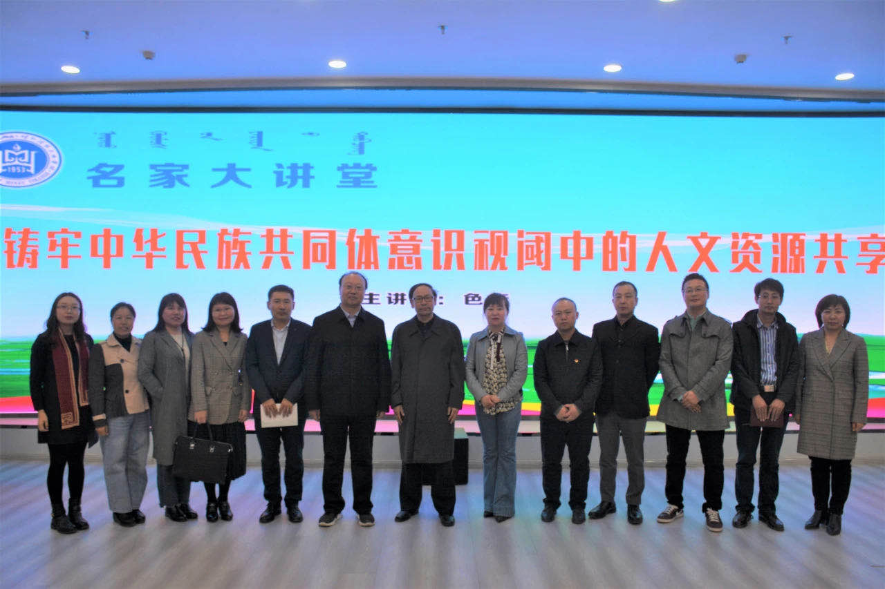 色音教授以“鑄牢中華民族共同體意識視閾中的人文資源共享”為題,圍繞中華民族共同體,非物質文化遺產等關鍵詞,全面系統地闡釋了鑄牢中華民族共同體意識的歷史脈絡、核心要義以及如何在新時代保護和共享內蒙古非物質文化遺產,促進各民族交往交流交融。色音教授講授方式形象生動、案例詳實,使廣大師生受益匪淺,獲益良多。