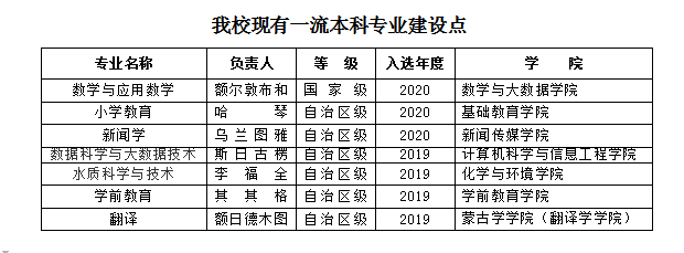 近日,自治區教育廳轉發《教育部辦公廳關于公布2020年度國家級和省級一流本科專業建設點名單的通知》(內教高函〔2021〕10號),公布了2020年度國家級、省級一流本科專業建設點。我校數學與應用數學專業獲批國家級一流本科專業建設點,實現了學校國家級一流本科專業建設點零的突破。我校小學教育、新聞學專業獲批省級一流本科專業建設點。截至目前,我校有國家級一流本科專業建設點1個,省級一流本科專業建設點6個。