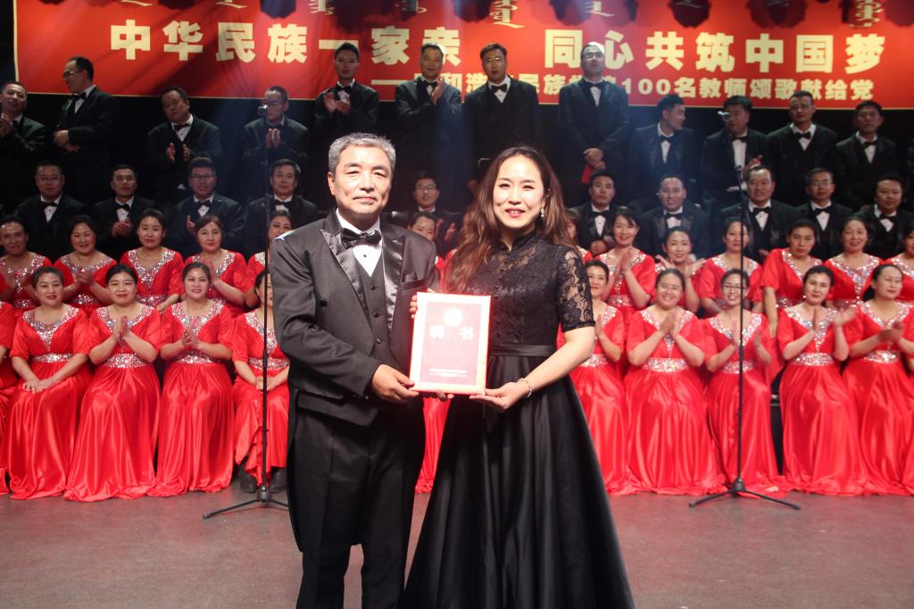 成立儀式上,胡春梅副書(shū)記宣讀了《呼和浩特民族學(xué)院關(guān)于成立教職工合唱團(tuán)的通知》,格日樂(lè)圖為合唱團(tuán)特聘指揮、指導(dǎo)老師張麗陽(yáng)頒發(fā)了聘書(shū)。