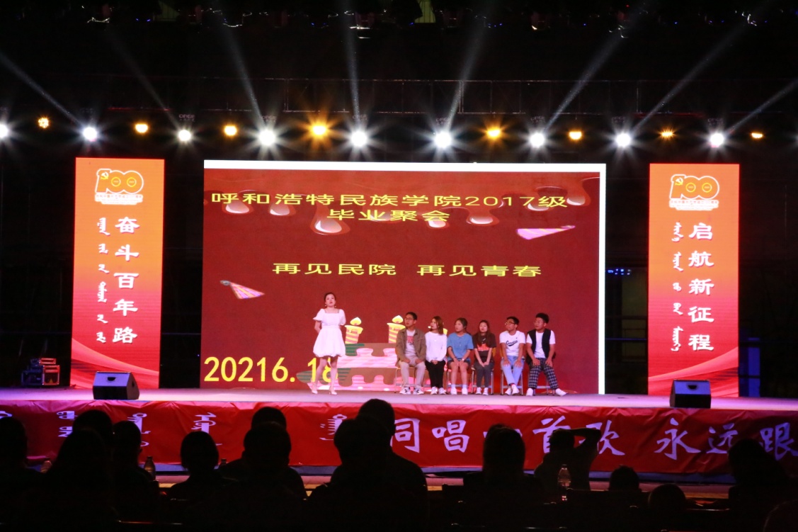 6月18日晚,由校團(tuán)委主辦、校學(xué)生會承辦的“同唱一首歌 永遠(yuǎn)跟黨走”呼和浩特學(xué)院2021屆畢業(yè)生晚會在體育館西側(cè)隆重舉行。校黨委副書記胡春梅,校黨委委員、副校長韓偉新,校黨委委員、紀(jì)委書記、監(jiān)察專員王冬梅,校黨委委員、組織部部長吳阿古拉,校黨委委員、黨政辦公室主任朝格吉樂圖以及各二級學(xué)院、各職能部門師生代表4000余人共同觀看了精彩紛呈的畢業(yè)生晚會。
