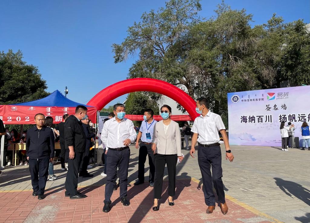 早上六時,我校迎新工作正式開始。學校出于疫情防控的需要,今年明確規定,外來車輛和學生家長一律禁止入內,根據學校“我為群眾辦實事”安排,出動十輛小型面包車,二十輛校園巡邏電動車,幫助同學們將行李由校門運至報到點,再由各學院志愿者定點引導同學完成報到事宜。學校出動愛心車接力,無縫銜接打通了民院報到最后一公里。新生報到采用“易班”線上掃碼的形式開展,同學們通過“易班”迎新系統完成個人信息完善、家庭經濟情況登記、軍訓服裝尺碼采集等手續,既大大地簡化了報到流程也實現“數字迎新”。迎新現場的LED電子大屏滾動播放學校宣傳片,實時更新報道人數,讓科技助力學生服務管理。除此之外,各二級學院結合專業特點,為2021級新生獻上了一場精彩紛呈的演出,詮釋著都林廣場最熱情的期待。由音樂學院馬頭琴專業學生演奏的馬頭琴曲合奏,婉轉悠揚;蒙古長調《團尾馬》,音域寬廣,高亢奔放;竹笛二重奏《揚鞭催馬運糧忙》,銀鈴悅耳,清涼遼遠;大學生藝術團表演的舞蹈《奔騰》和《吆呼爾》,舞姿優美,活力滿滿點燃了整個迎新現場。