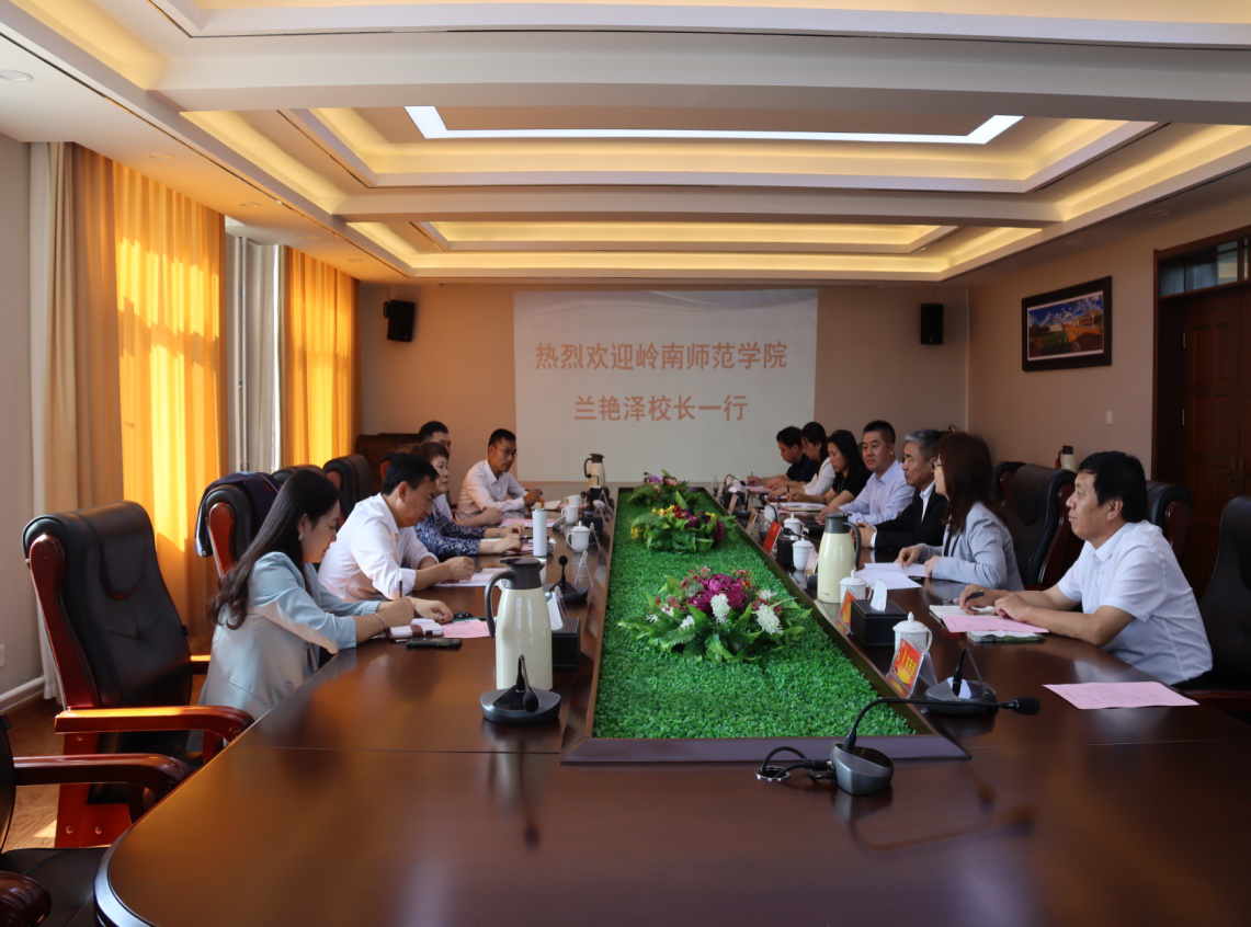 在辦公樓黨委會會議室,蘭艷澤校長一行與我校黨委副書記、校長格日樂圖、黨委副書記胡春梅進行了座談。格日樂圖校長,胡春梅副書記對蘭艷澤校長一行表示誠摯的歡迎,并介紹了我校發展歷程、學科建設、專業設置和人才保障等工作。蘭艷澤校長對我校錯位發展、創新發展給予了高度評價,并希望兩校在碩士點建設、師范生培養等方面攜手共進共同發展。與會人員圍繞學科建設發展、專業設置、人才保障、教育評價體系改革等方面進行了討論。