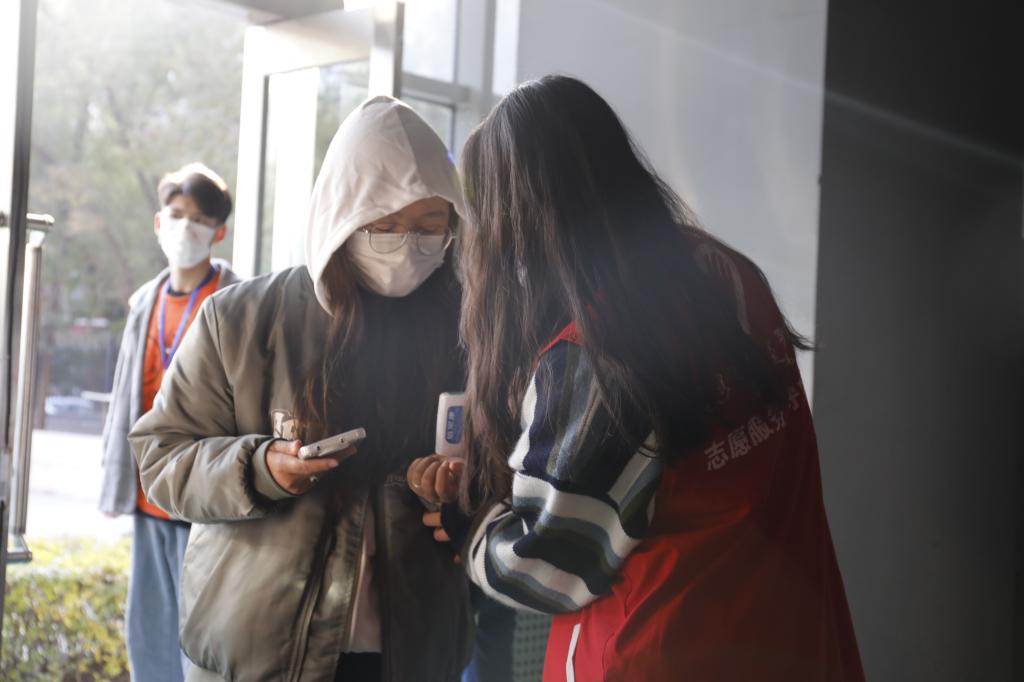 體育館內,“石榴籽”志愿者們全程開展秩序引導和服務保障工作,受到了醫護人員和廣大師生的好評。