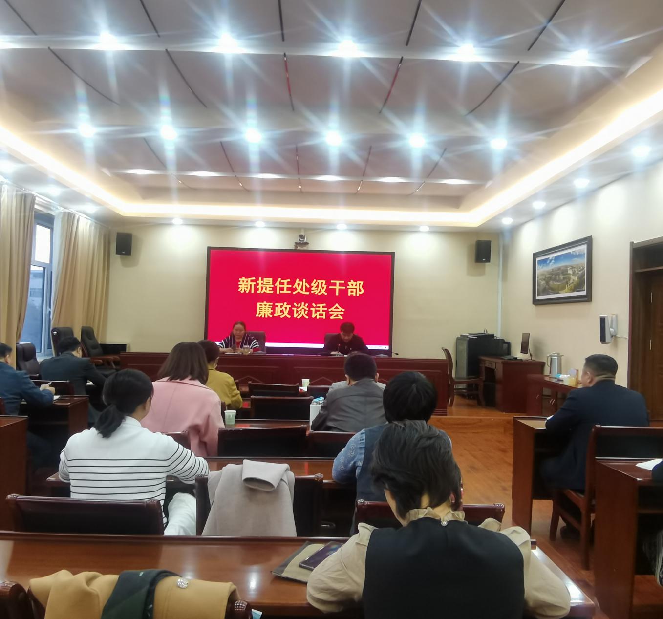 王冬梅書記指出,領導干部廉政談話是黨內一項十分重要的制度,是干部任免的必經程序,是對新任干部的一種關心和愛護。她希望通過這次談話,提高大家對黨風廉政建設的認識,自覺做到廉政勤政,切實擔負起抓黨風廉政建設和教育教學管理工作的雙重責任,在人生新的征程開好頭、起好步,在新的工作崗位上發展好、走正路,努力做一名讓組織放心、教工滿意、群眾信任的合格處級領導干部。