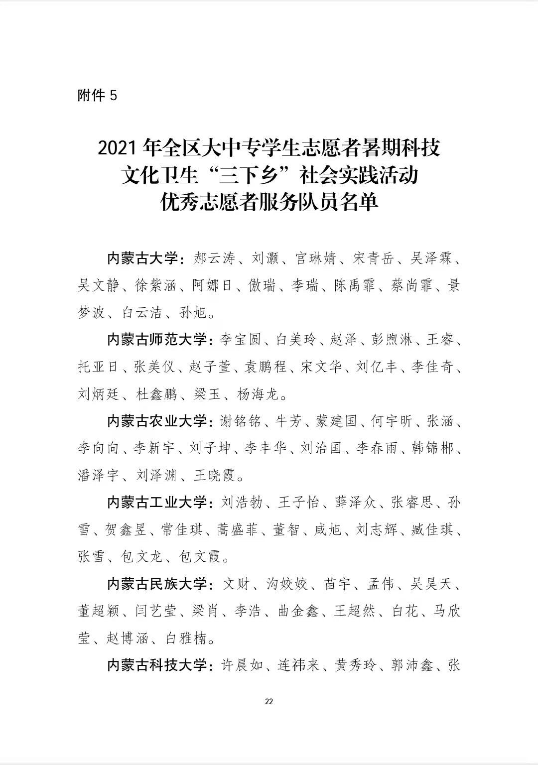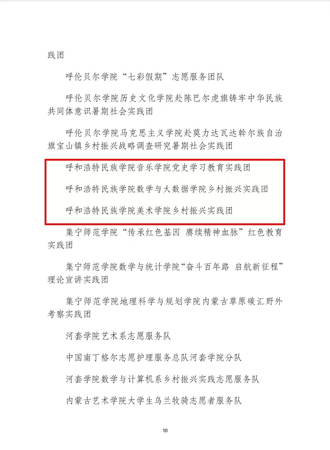在本次表彰中:我校音樂學院黨史學習教育實踐團、數學與大數據學院鄉村振興實踐團、美術學院鄉村振興實踐團榮獲2021年全區大中專學生志愿者暑期“三下鄉”社會實踐活動優秀志愿者服務隊稱號;白銀亮、包為為2名教師榮獲2021年全區大中專學生志愿者暑期“三下鄉”社會實踐活動優秀工作者稱號;魏偉、姜鵬、烏依勒斯、于佳暉、斯日古冷等5名教師榮獲2021年全區大中專學生志愿者暑期“三下鄉”社會實踐活動優秀指導教師榮譽稱號;孫明達、于佳晶、楊泰嘉等16名同學榮獲2021年全區大中專學生志愿者暑期“三下鄉”社會實踐活動優秀志愿者服務隊員稱號。