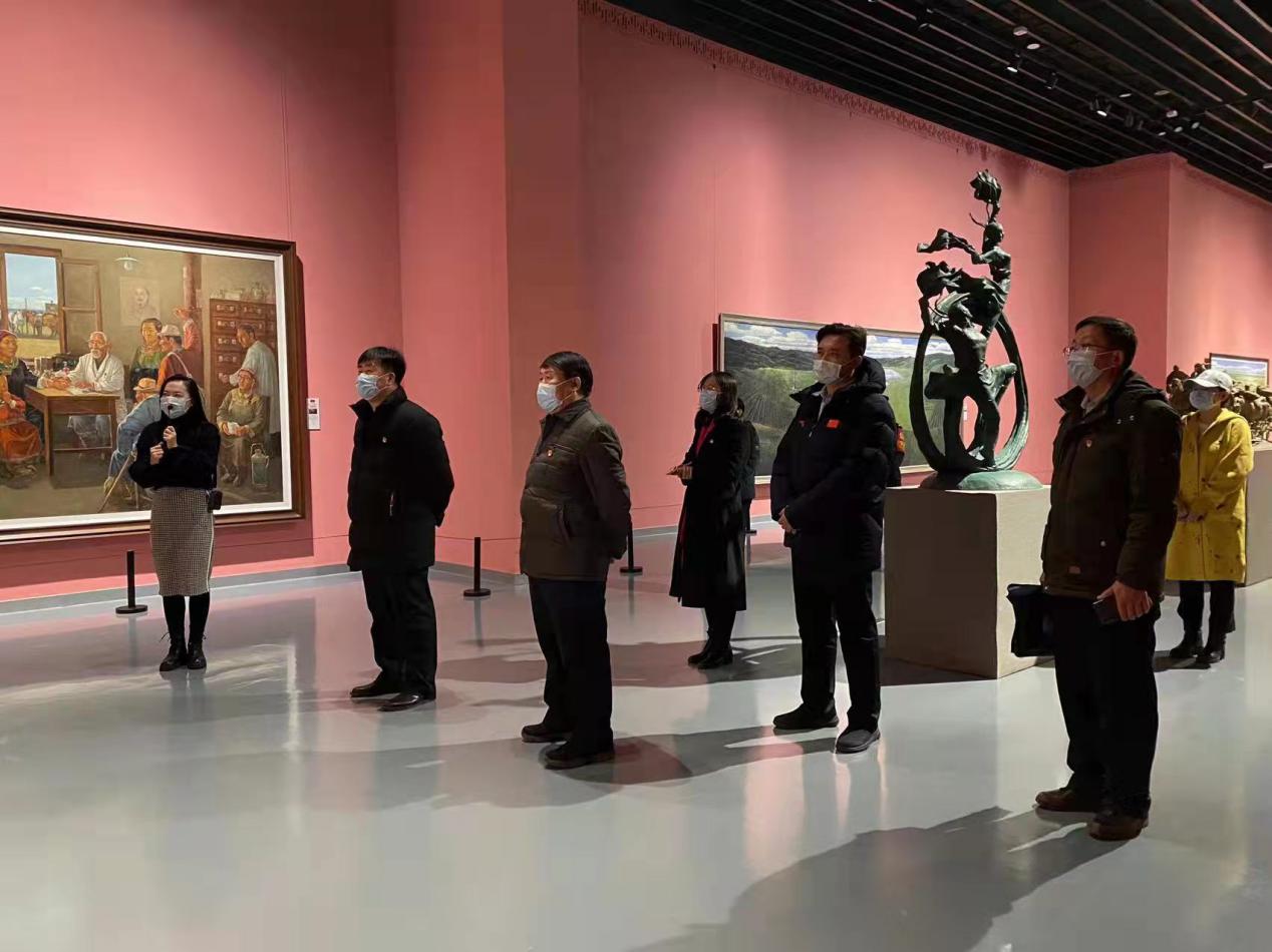 在內(nèi)蒙古美術(shù)館,依次參觀了“永遠(yuǎn)跟黨走——紅色百年內(nèi)蒙古”油畫雕塑作品展、鑄牢中華民族共同體意識——內(nèi)蒙古美術(shù)館館藏作品展、翰墨丹心——內(nèi)蒙古自治區(qū)文史研究館書畫作品展等展廳。一幅幅畫作、一件件雕塑、一張張書法,以美為體,以史為魂,生動直觀地再現(xiàn)了中國共產(chǎn)黨的百年奮斗史詩,真實、全面、立體地展示了在中國共產(chǎn)黨的領(lǐng)導(dǎo)下,內(nèi)蒙古各族兒女守望相助、團結(jié)奮斗、一往無前,各項事業(yè)繁榮發(fā)展的光輝歷程,激勵著黨員干部在新時代擔(dān)當(dāng)初心使命的思想自覺、政治自覺和行動自覺。