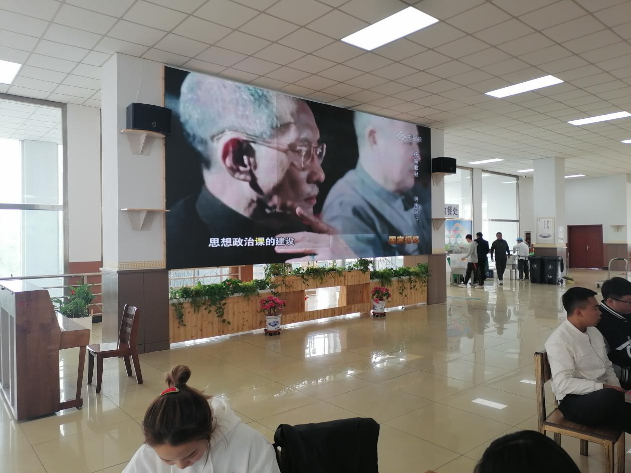 為充分發(fā)揮食堂環(huán)境育人作用和服務(wù)功能,后勤管理處黨支部積極改造學(xué)校南區(qū)食堂三樓餐廳,通過增設(shè)書架花架,更換餐桌餐椅、修復(fù)粉刷墻面、安裝電子屏幕,打造環(huán)境優(yōu)美、溫馨舒適的就餐、學(xué)習(xí)和交流活動區(qū)域。其中,通過三樓電子屏幕,結(jié)合開展黨史學(xué)習(xí)教育,滾動播放紅色電影以及《同心共筑中國夢》等專題紀(jì)錄片,充分發(fā)揮環(huán)境育人作用。