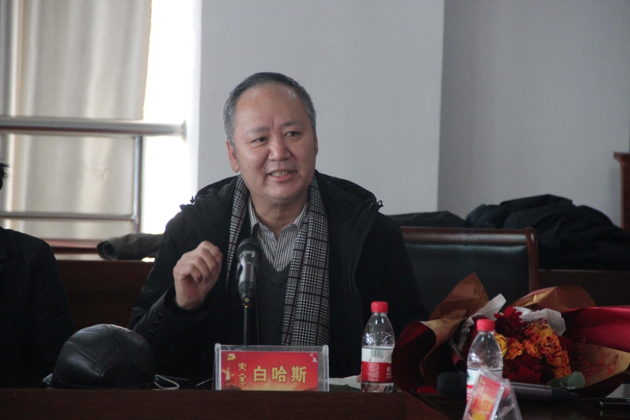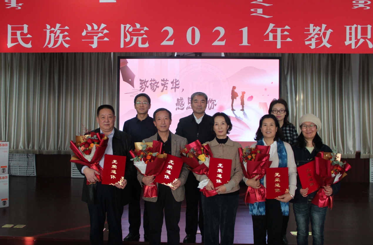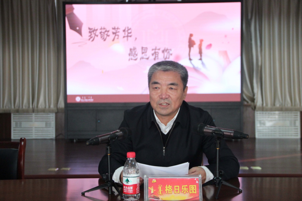 格日樂圖校長代表學校黨委向榮休教職工表示感謝,感謝他們把最美好的時光奉獻了民院,將青春和智慧留在了校園,把立德樹人、鑄魂育人的使命擔當寫在了民院68年的發展史上。