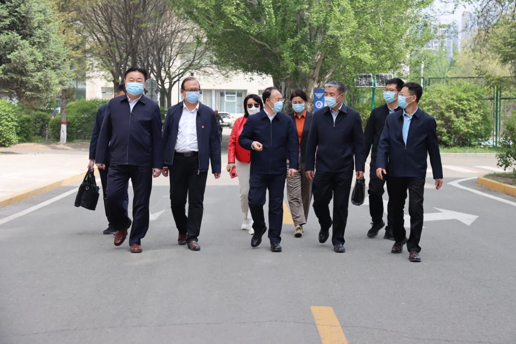 5月9日上午,呼和浩特市副市長劉建國,新城區委常委、統戰部長侯一君一行來我校,就疫情防控工作、學生春季學期返校準備情況等進行實地調研。校黨委書記格日樂圖,黨委副書記、校長喬彪,副校長納麗娜,黨委委員、副校長高喜天及學校疫情防控工作領導小組辦公室及相關專項工作組負責人、工作人員等隨行調研。