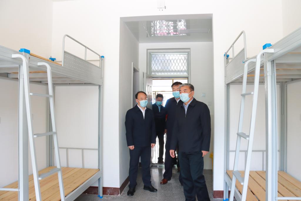劉建國一行實地查看了我校西大門、核酸檢測點、應急指揮部、防疫物資儲備庫、學生食堂、留觀門診、隔離觀察室等疫情防控重點區域,現場了解了疫情防控各項措施的落實情況,肯定了前期準備工作,并提出了加強預防為主、注重抓早抓小、細化應急處置流程等指導建議。隨后,就加強校園管理、提升應急處置能力等疫情防控工作相關事宜進行了座談交流。