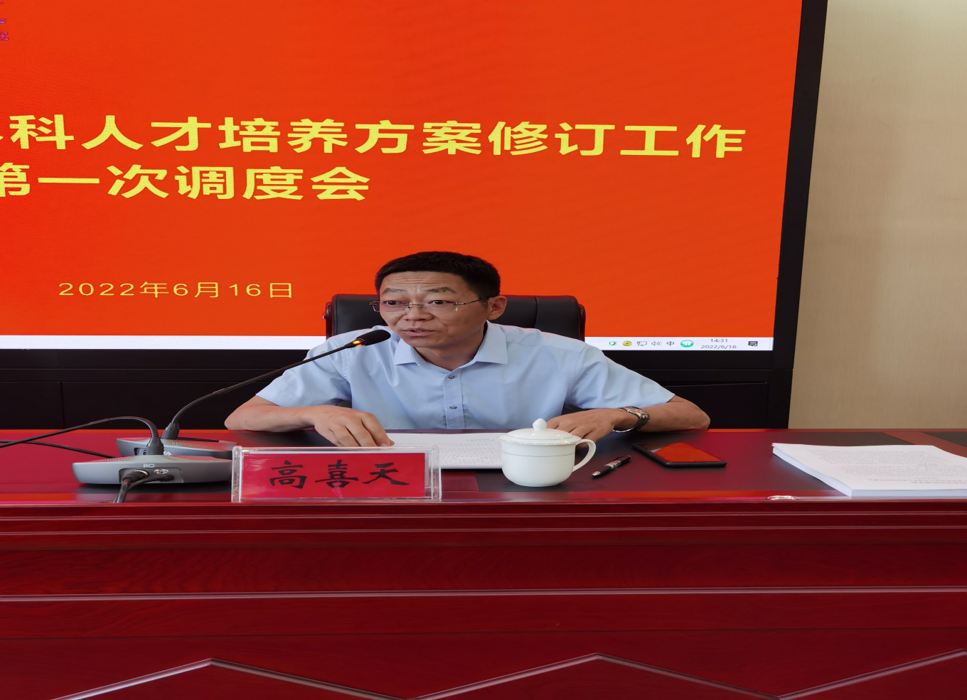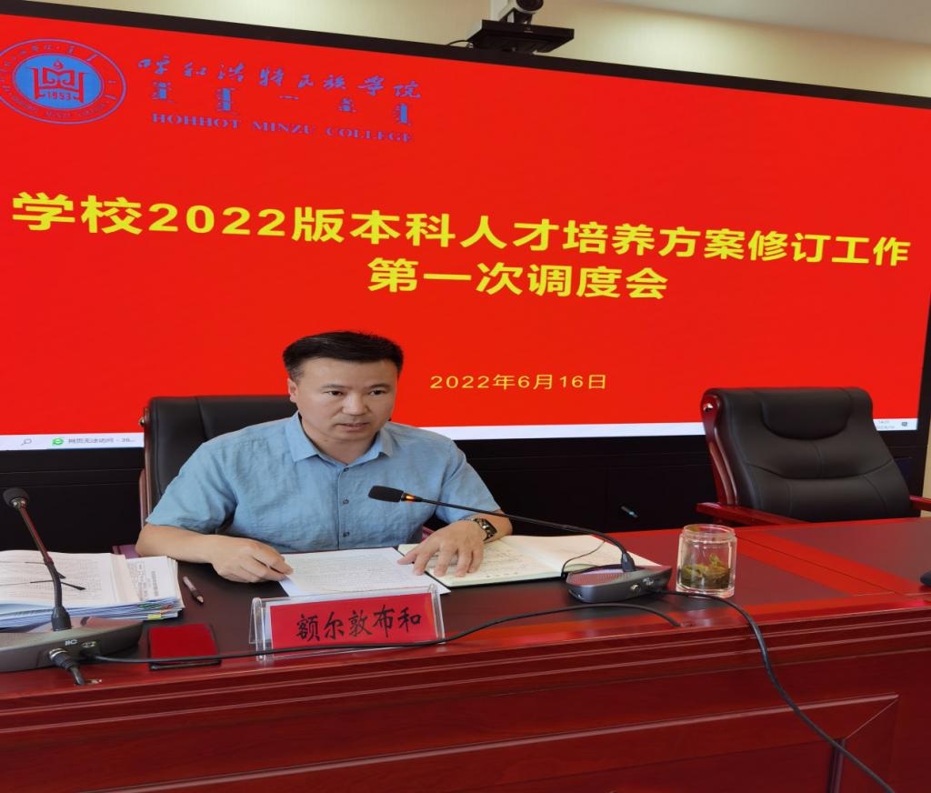 2022年6月16日下午,在辦公樓四樓會議室召開學校2022年春季學期返校工作部署暨2022版本科人才培養方案修訂工作第一次調度會。副校長高喜天出席會議,教務處處長額爾敦布和主持會議。