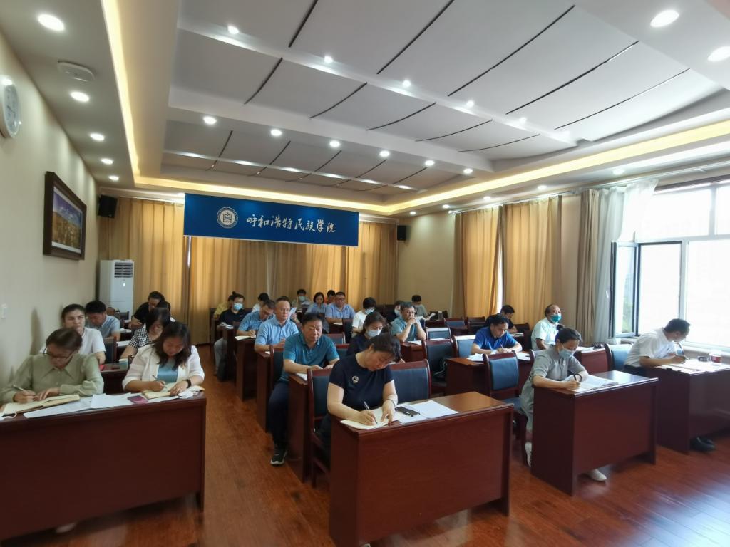 為進一步深化教學改革,構建我校辦學定位與特色的本科人才培養體系,優化調整應用型本科專業結構與布局,培養德、智、體、美、勞全面發展的應用型人才,會議上教務處對2022版本科人才培養方案修訂工作進行安排部署。額爾敦布和處長從指導思想、基本原則、修訂重點、人才培養方案內容與說明和工作要求等五個方面對《呼和浩特民族學院關于修訂2022版本專業人才培養方案的指導性意見(征求意見稿)》做了解讀,部署2022版本科人才培養方案修訂工作。