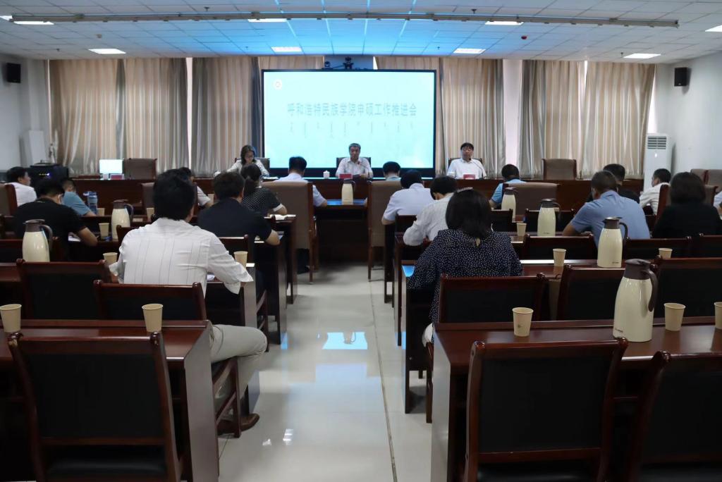 為了進一步凝聚思想共識,明確工作目標,壓實工作責任,厘清工作任務,加快推進學校申碩工作,7月13日上午,在綜合樓12樓會議室召開申碩工作推進會。校黨委書記格日樂圖,黨委副書記、校長喬彪,黨委副書記胡春梅出席會議。各職能部門負責人,各二級學院書記、院長,申報學科相關學院領導班子成員及申碩工作專項工作組全體成員,共計100余人參加了會議。會議由校黨委書記格日樂圖主持。