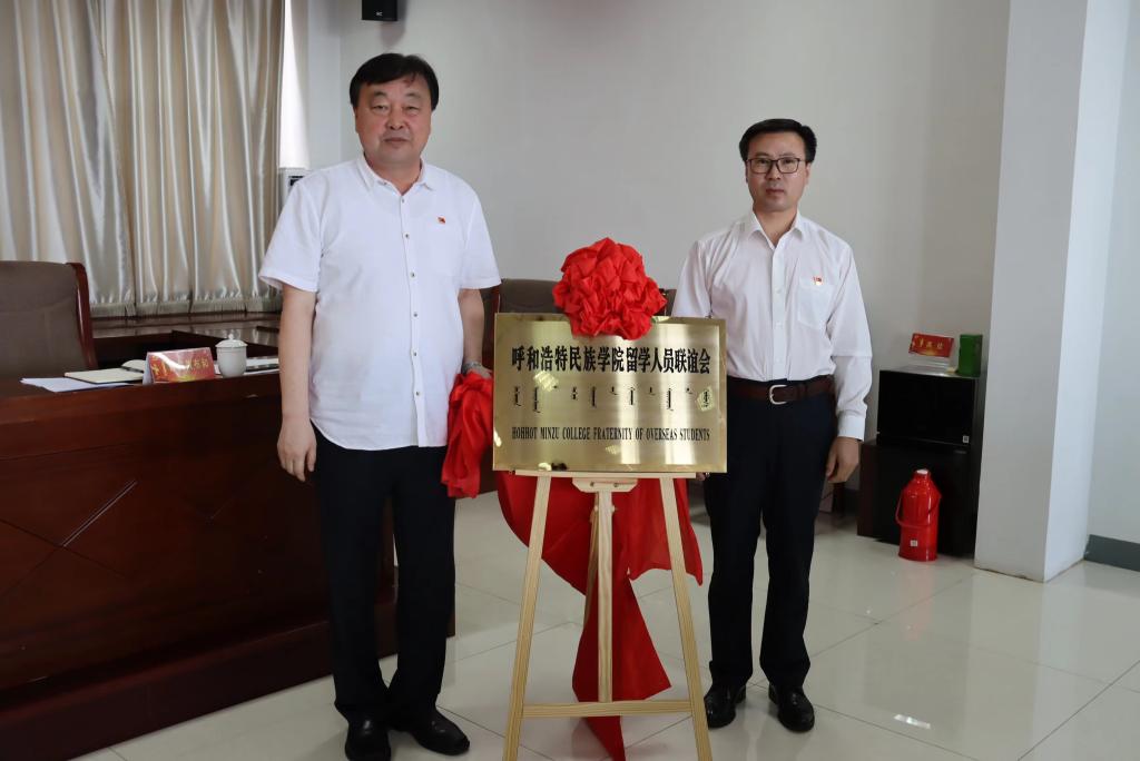 黨委副書記、校長喬彪向會長額爾敦布和授予呼和浩特民族學院留學人員聯誼會牌匾。