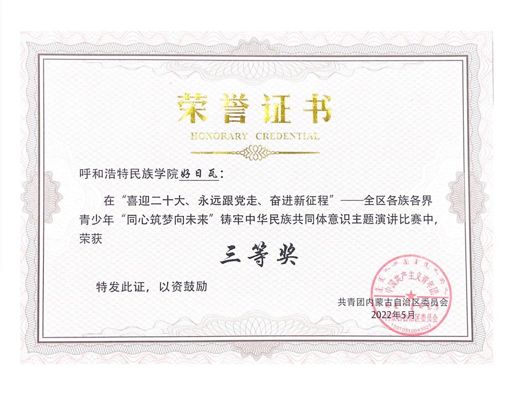 近日,由自治區團委主辦的“喜迎二十大、永遠跟黨走、奮進新征程”——全區各族各界青少年“同心筑夢向未來”鑄牢中華民族共同體意識主題演講比賽圓滿落幕。我校選送的新聞傳媒學院2019級好日瓦同學的主題演講《各民族共命運同呼吸》榮獲全區第三名,新聞傳媒學院團總支書記旭日榮獲“優秀指導教師”榮譽稱號,學校團委榮獲“優秀組織獎”。