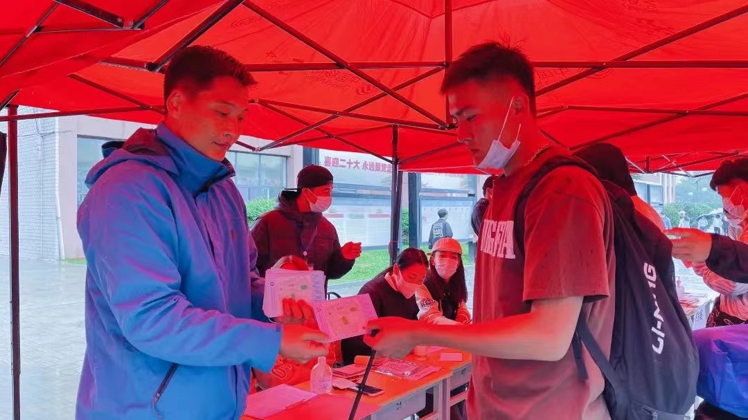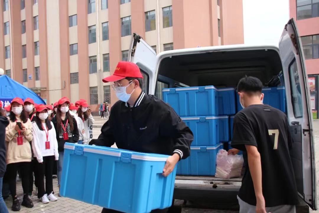 為配合防疫要求,報到當晚,學校組織44名教工黨員志愿者、111名學生黨員志愿者為大一新生送餐,保障同學們的日常生活安全有序進行。