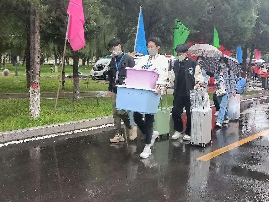 早上六時,我校迎新工作正式開始。校領導蒞臨現場關懷備至,視察迎新情況,慰問工作人員,詢問學生的報到、住宿等情況。學校組織志愿者前往呼和浩特東站迎接新生,志愿者在車站前嚴陣以待,為同學們搬運行李、提供幫助。為確保迎新工作有序開展,學校嚴格落實疫情防控要求,周密部署,嚴格校門管控,將保障學生健康安全放在了首位。學校出于疫情防控的需要,今年明確規定,外來車輛和學生家長一律禁止入內。為此,學校組織15輛愛心擺渡車在兩個西門接送學生,幫助同學們將行李由校門運至報到點。搬行李、打雨傘、找宿舍,忙忙碌碌的“紅馬甲”志愿者定點引導新入學同學完成報到事宜。“志愿紅”“愛心車”,溫暖了微冷的初秋,打通報到最后一公里,也繪就了校園最美的風景線。