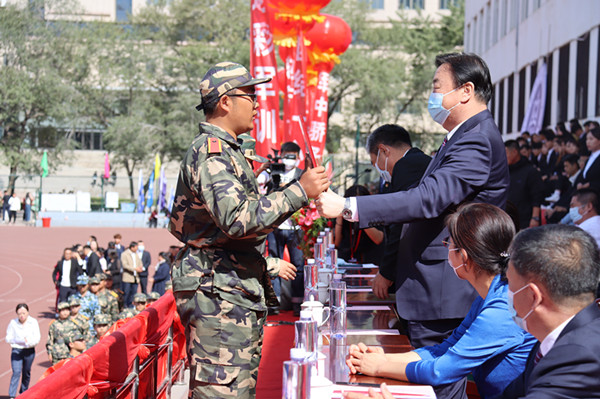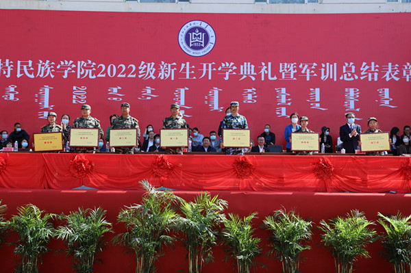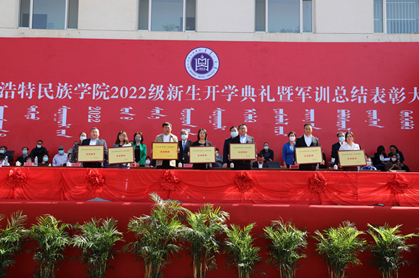 9月18日上午,我校2022級學生開學典禮暨軍訓總結表彰大會在南院操場隆重舉行。學校黨委書記格日樂圖,黨委副書記、校長喬彪,黨委副書記胡春梅,副校長納麗娜,黨委委員、紀委書記、監察專員王冬梅,黨委委員、副校長高喜天,黨委委員、副校長劉瑞鴻出席大會,各職能部門負責人,二級學院黨總支書記、院長、學工辦主任、輔導員、新生班主任以及全體2022級學生共2400余人參加了大會。大會由黨委委員、副校長高喜天主持。