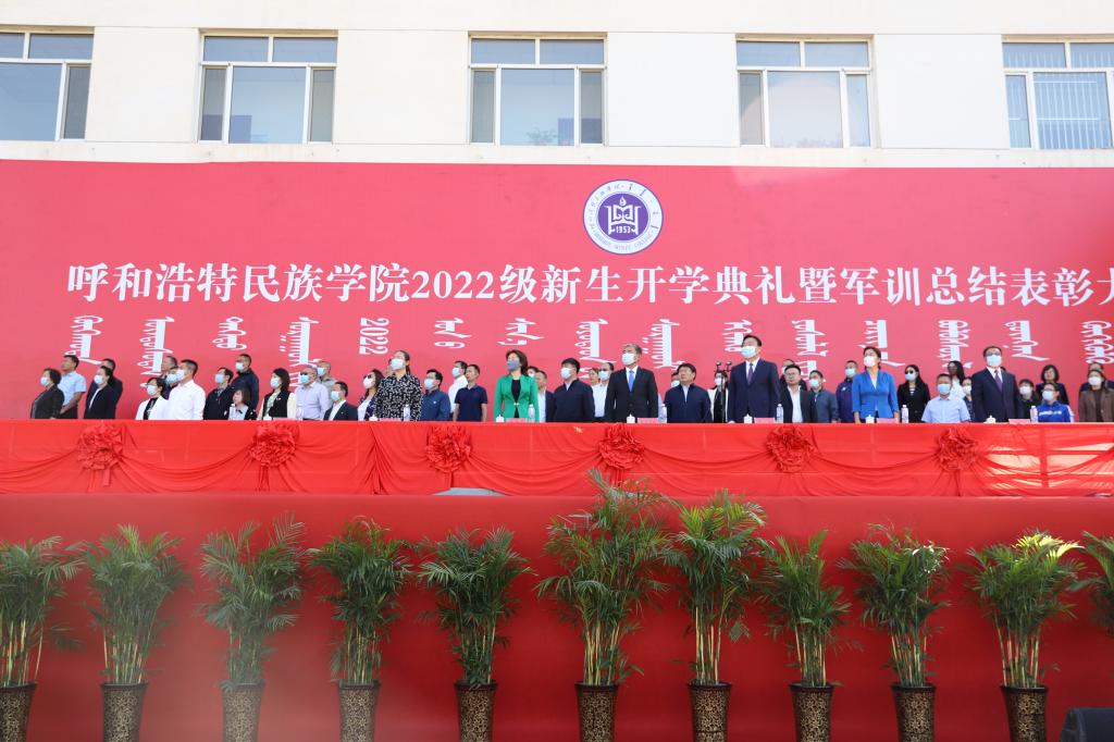 黨委副書記、校長喬彪以《不負青春凌云志 踔厲奮發啟新程》為題發表了講話,他代表全體師生員工向加入呼和浩特民族學院大家庭的2022級新生表示最熱烈的歡迎。他向新生提了四點期望:一是希望大家厚植家國情懷,爭做志存高遠的愛國青年。把個人小我融入到國家大我,堅定不移聽黨話、跟黨走,不斷增強做中國人的志氣、骨氣、底氣,追求更有高度、更有境界的人生。二是希望大家練就過硬本領,爭做篤實力行的有為學子。珍惜時光,刻苦學習,打牢基礎,夯實專業,堅持知行合一,做實干家,當奮斗者,讓青春在不懈奮斗中綻放光彩。三是希望大家塑造優良品格,爭做積極向上的時代新人。迎難而上、自強不息,不斷塑造更加優秀的自己。修身立德、錘煉品格,爭做社會主義核心價值觀的堅定信仰者、積極傳播者、模范踐行者。四是希望大家凝聚團結力量,爭做團結奮進的先進模范。繼承和發揚學校民族團結進步的優良傳統,牢固樹立休戚與共、榮辱與共、生死與共、命運與共的共同體理念,弘揚團結奮斗精神,在交往中相互了解,在交流中相互理解,在交融中相互欣賞,像石榴籽那樣緊緊抱在一起,共同成長進步。