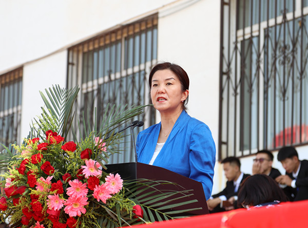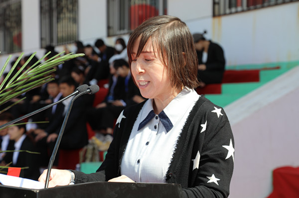 外國語學院院長肖查娜代表全體教師發言,她希望同學們銘記校訓,肩負起崇正、尚智、務本、傳承的使命,立大志、明大德、成大才、擔大任,不負韶華,不負時代,不負人民,在青春的賽道上奮力奔跑!