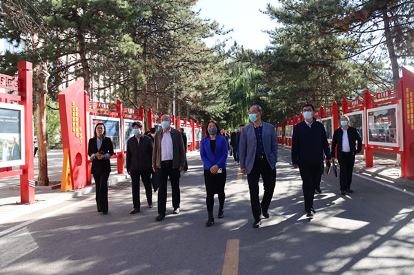 調(diào)研組一行參觀了學(xué)校民族團(tuán)結(jié)進(jìn)步文化長廊、民族團(tuán)結(jié)進(jìn)步創(chuàng)建工作展板和時代楷模宣傳欄,并實(shí)地了解了自治區(qū)四部委鑄牢中華民族共同體意識研究基地和國家民委“一帶一路”沿線“漢譯學(xué)”研究中心的建設(shè)情況。
