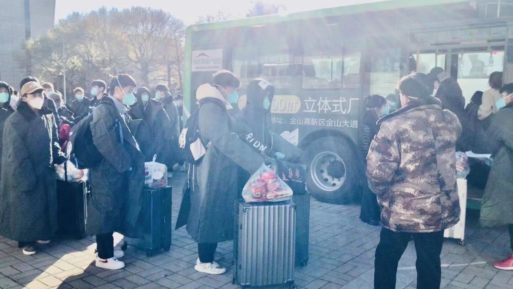 11月3日,我校無疫樓宇中的104名學生,帶著溫馨的期待,拿上行李箱,登上轉運車輛,告別校園,奔向親人、奔向惦念、奔向充滿愛的港灣,在帶隊老師的全程陪伴下順利踏上了歸家的旅途。學校為同學們準備了口罩、手套、酒精噴霧等基本防疫物資和面包、牛奶、方便面、礦泉水等生活物資。