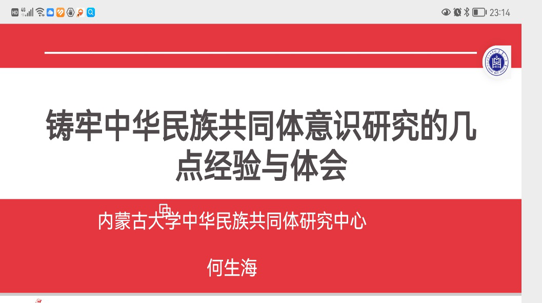 應我校鑄牢中華民族共同體意識研究基地、民族學學院共同邀請,內蒙古大學鑄牢中華民族共同體意識研究培育基地首席專家、內蒙古自治區黨委決策咨詢專家、內蒙古自治區政協智庫專家組成員、內蒙古大學三級教授、博士生導師何生海于12月8日晚7:00-9:00以在線形式為我校師生做題目為“鑄牢中華民族共同體意識研究的幾點經驗與體會”的學術講座。