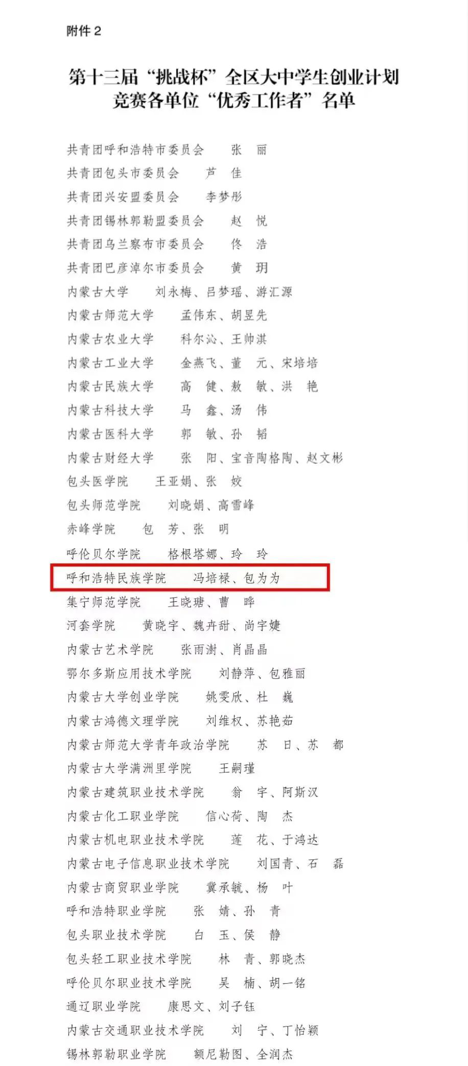 近日,第十三屆“挑戰(zhàn)杯”全區(qū)大中學(xué)生創(chuàng)業(yè)計(jì)劃競賽成績揭曉,我校再創(chuàng)佳績,參賽作品分別獲得本科組特等獎(jiǎng)3項(xiàng)、一等獎(jiǎng)4項(xiàng)、二等獎(jiǎng)8項(xiàng)、三等獎(jiǎng)11項(xiàng),我校榮獲“優(yōu)勝杯”,計(jì)算機(jī)科學(xué)與信息工程學(xué)院馮培祿老師、音樂學(xué)院團(tuán)總支書記包為為老師榮獲“優(yōu)秀工作者”稱號(hào)。