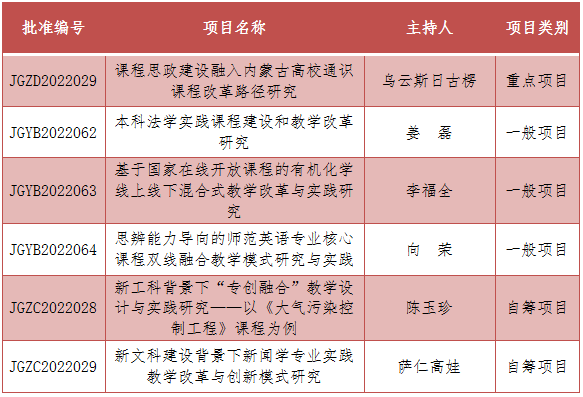 近日,自治區(qū)教育廳公布了2022年自治區(qū)本科教育教學(xué)改革研究項(xiàng)目立項(xiàng)結(jié)果。我校獲批重點(diǎn)項(xiàng)目1項(xiàng),一般課題2項(xiàng)和自籌項(xiàng)目2項(xiàng)。
