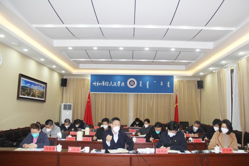 1月8日下午,我校在辦公樓4樓會議室召開疫情防控工作部署會,學習傳達自治區黨委常委會會議暨自治區應對疫情工作領導小組會議精神和全區疫情防控工作視頻會議精神,學習傳達全區教育系統疫情防控工作專題部署會精神,并對我校疫情防控工作進行再強調再部署。校領導劉九萬、韓偉新、胡春梅、納麗娜、高喜天、劉瑞鴻出席會議,學校疫情防控各專項工作組、相關單位負責人參加了會議。