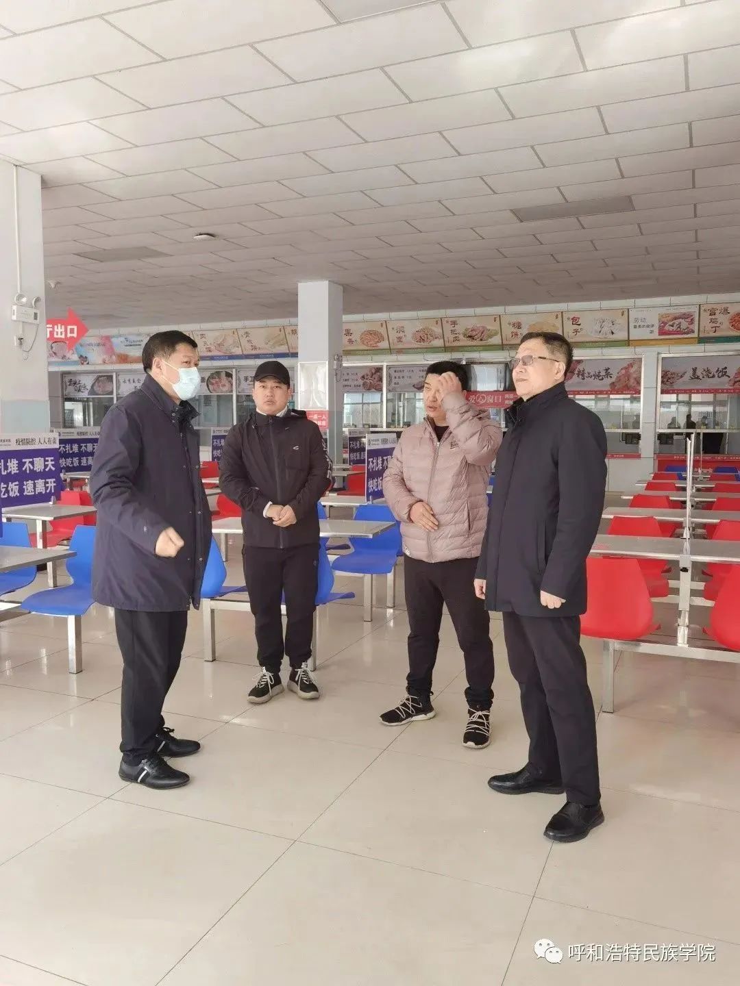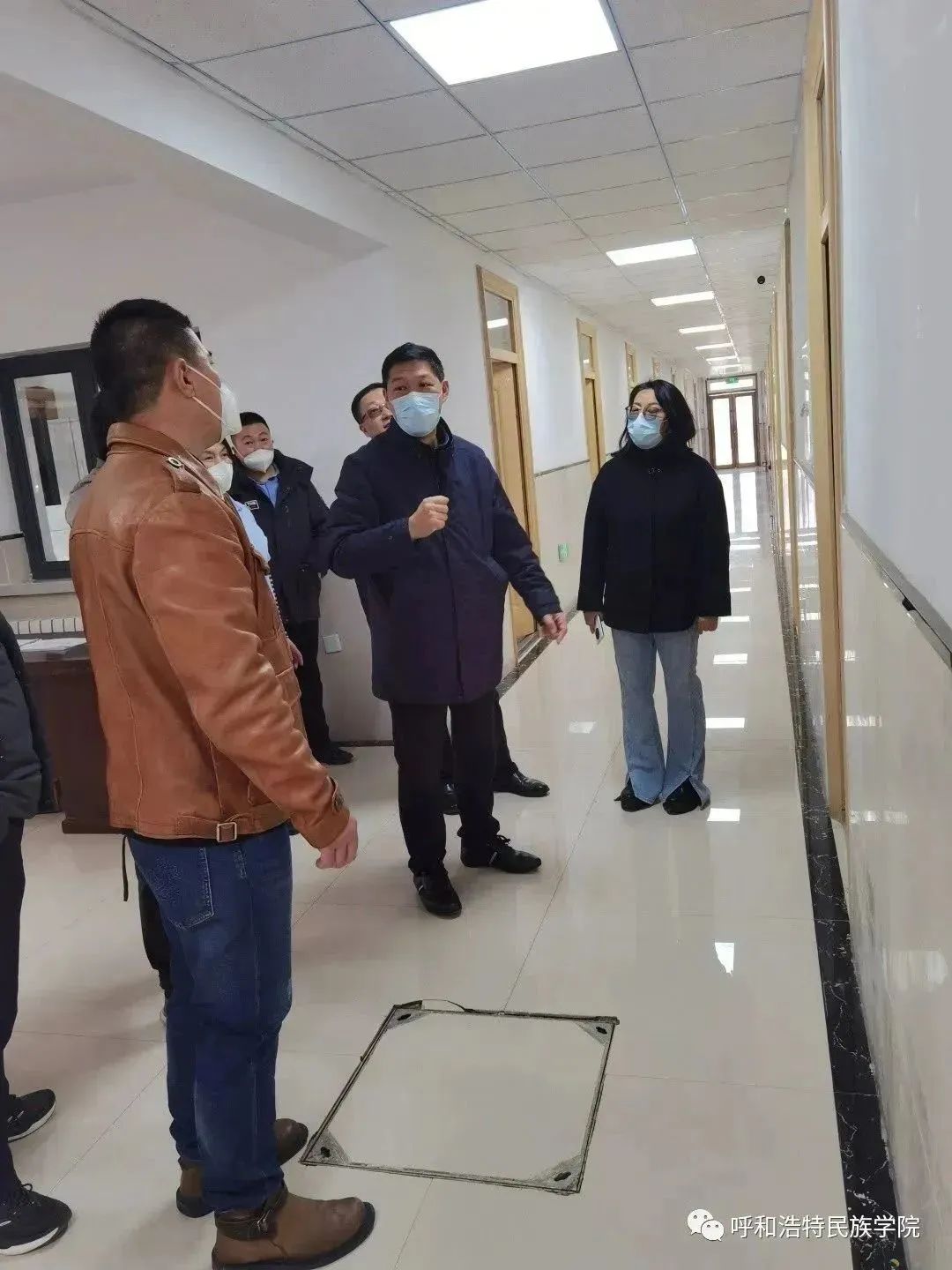 2月23日,校領導劉九萬、韓偉新帶隊深入一線檢查督導春季學期開學準備工作情況,副校長納麗娜、劉瑞鴻以及黨政辦公室、組織部、宣傳部、學生工作處、保衛處、后勤管理處、信息網絡中心負責人陪同檢查。