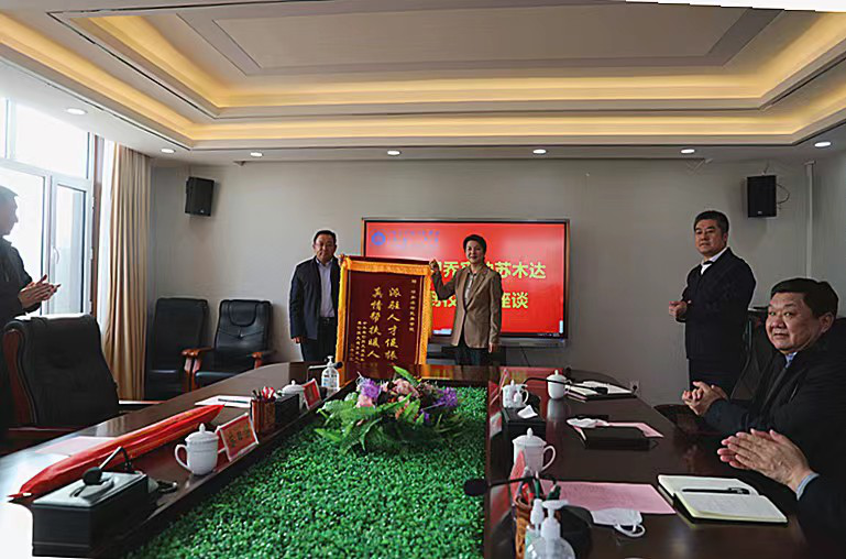 座談中,納麗娜簡要介紹了學(xué)校基本情況及鄉(xiāng)村振興研究基地工作開展情況。喬憲坤介紹了奈林稿嘎查的發(fā)展變化,對學(xué)校的鄉(xiāng)村振興幫扶表示感謝,并贈送了錦旗。雙方就下一步具體工作進(jìn)行了深度交流。