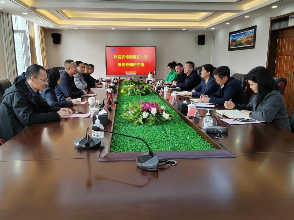 納麗娜代表學校對安偉一行表示歡迎,希望進一步深化校地合作、推進科技成果轉化、推動創新創業、促進大學生就業,助力落實自治區“五大任務”。