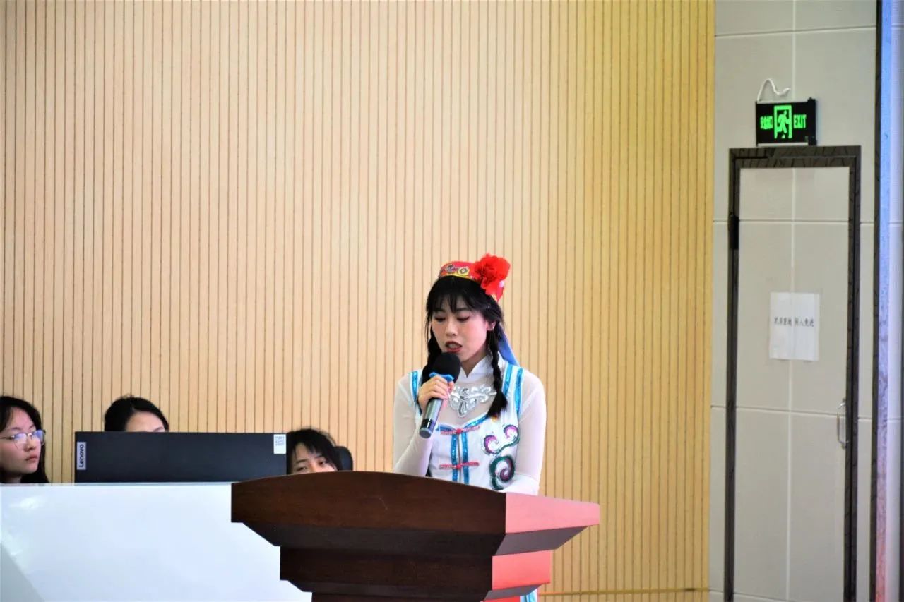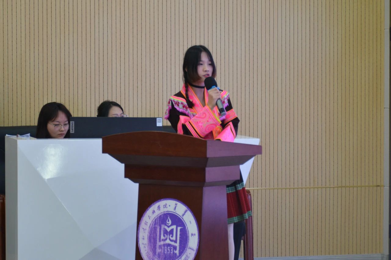 蒙古族同學竇建文分享了《草原人民的紅色之子》,講述了烏蘭夫同志為中國人民的解放事業和社會主義建設事業奮斗一生的光輝事跡;回族同學馬詩佳講述了全國民族團結先進個人、“杰出媽媽”馬志英資助500余名回族、漢族女生完成學習的感人故事;漢族同學王瑜瑤講述了全國民族團結進步模范個人孟亞靜帶領當地村民致富的故事;布依族同學趙沁穎講述了布依族首領陸瑞光與紅三軍團領導人彭德懷、楊尚昆、李富春簽訂“反蔣作戰協定”——“弄染結盟”的故事;彝族同學伍萌萌講述了時任紅軍總參謀長兼先遣軍司令員劉伯承和彝族果基家支頭人小葉丹以水代酒,"彝海結盟"的感人故事。