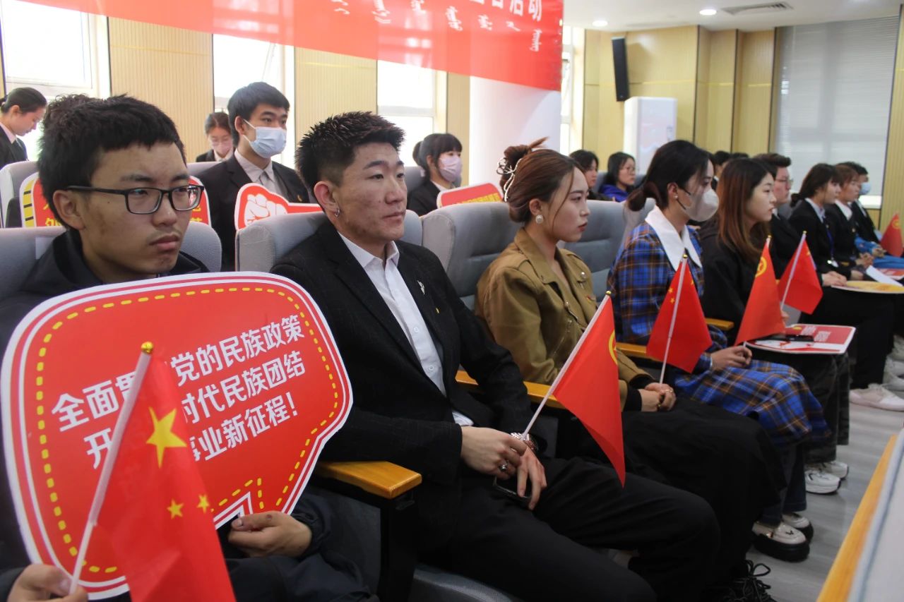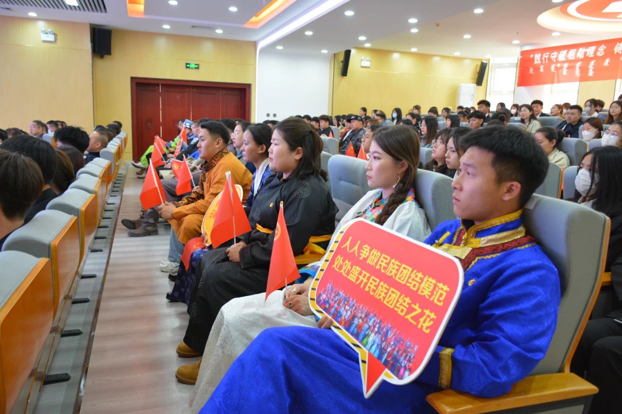 為深入學習宣傳貫徹黨的二十大精神,有形有感有效推動鑄牢中華民族共同體意識教育有形有感有效,4月13日上午,學校團委在北區圖書館一樓報告廳組織開展了“踐行守望相助理念,鑄牢中華民族共同體意識”主題團日活動暨第二期“石榴籽”小課堂。學校黨委委員、副校長高喜天,黨委委員、統戰部部長包君,團委書記蘇倫高娃,各二級學院團總支書記、輔導員及學生代表參加了活動。
