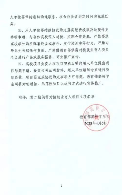 教育部供需對接就業育人項目旨在落實黨中央、國務院“穩就業”“保就業”決策部署,深化產教融合、校企合作,推動人才培養與就業有機聯動、人才供需有效對接。2022年10月,教育部發布申報指南,我校積極規劃,主動與用人單位接洽,3個項目經學校與用人單位聯合申報、專家審核、立項單位信息核查等流程,最終獲批立項。