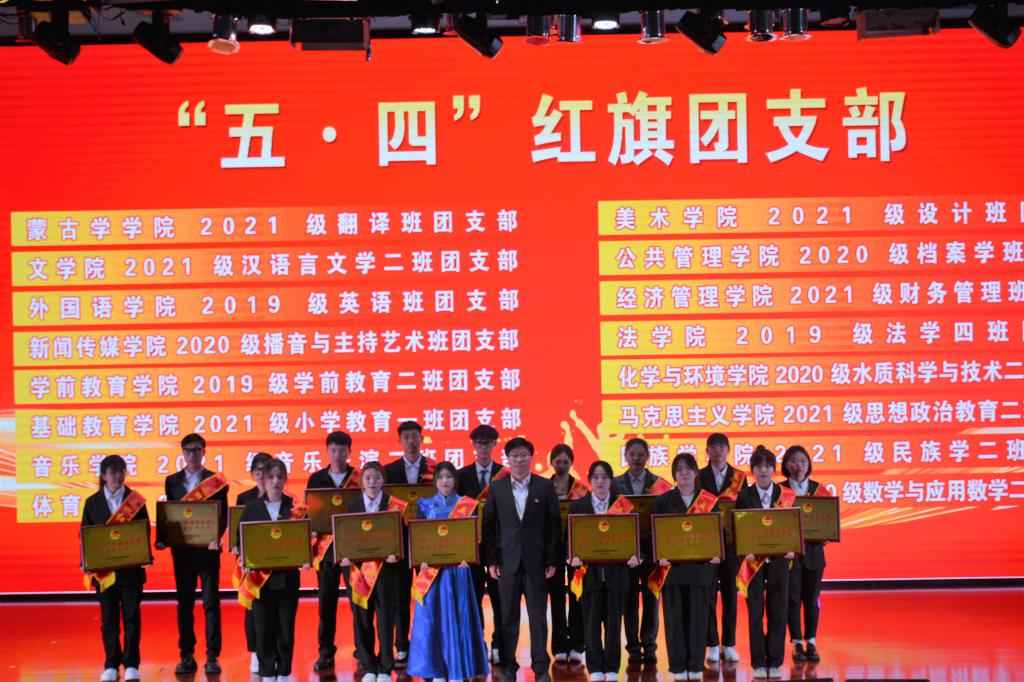 大會對我校2022—2023學年以來涌現出的優秀共青團員、優秀共青團干部、五四紅旗團支部、五四紅旗團總支等先進集體和個人進行了表彰,與會全體校領導為獲獎代表頒獎。